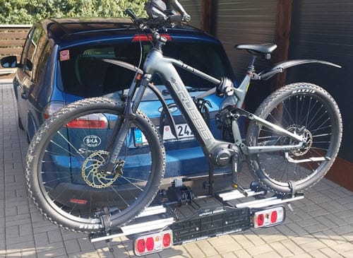 Univerzální nosič k upevnění na kouli tažného zařízení. Určeno pro 2 elektrokola nebo 2 běžná jízdní kola až do hmotnosti jednoho 30 kg.